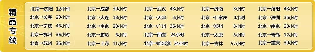 ●运价平:享受铁道部门的优惠政策,价 格优,部分城市包车,价格更平于空 运一半